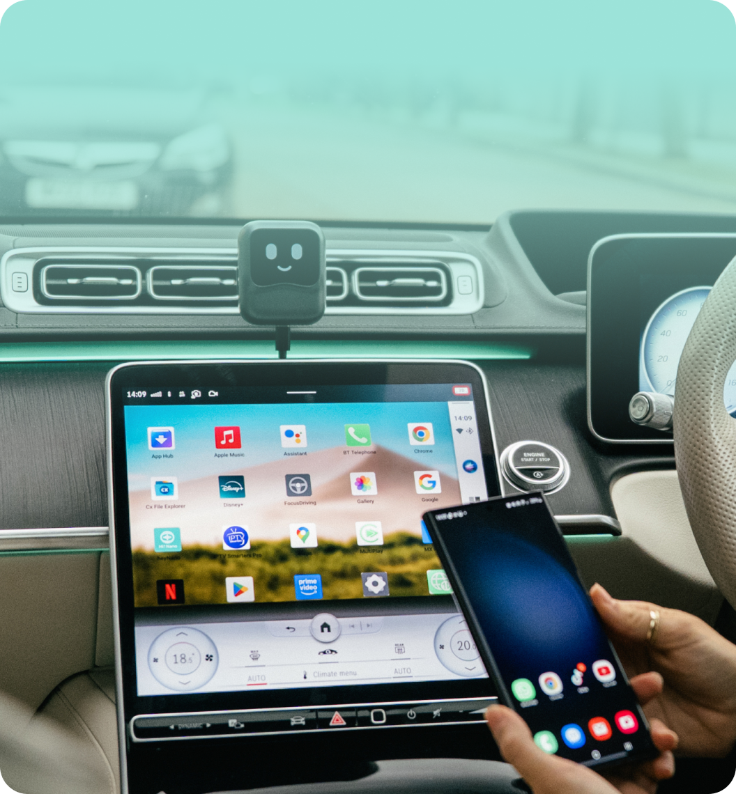 Contrairement à CarPlay/Android Auto, utilisez les applications librement sans restrictions. Regardez Netflix, YouTube, ou utilisez n'importe quelle application sur votre tableau de bord